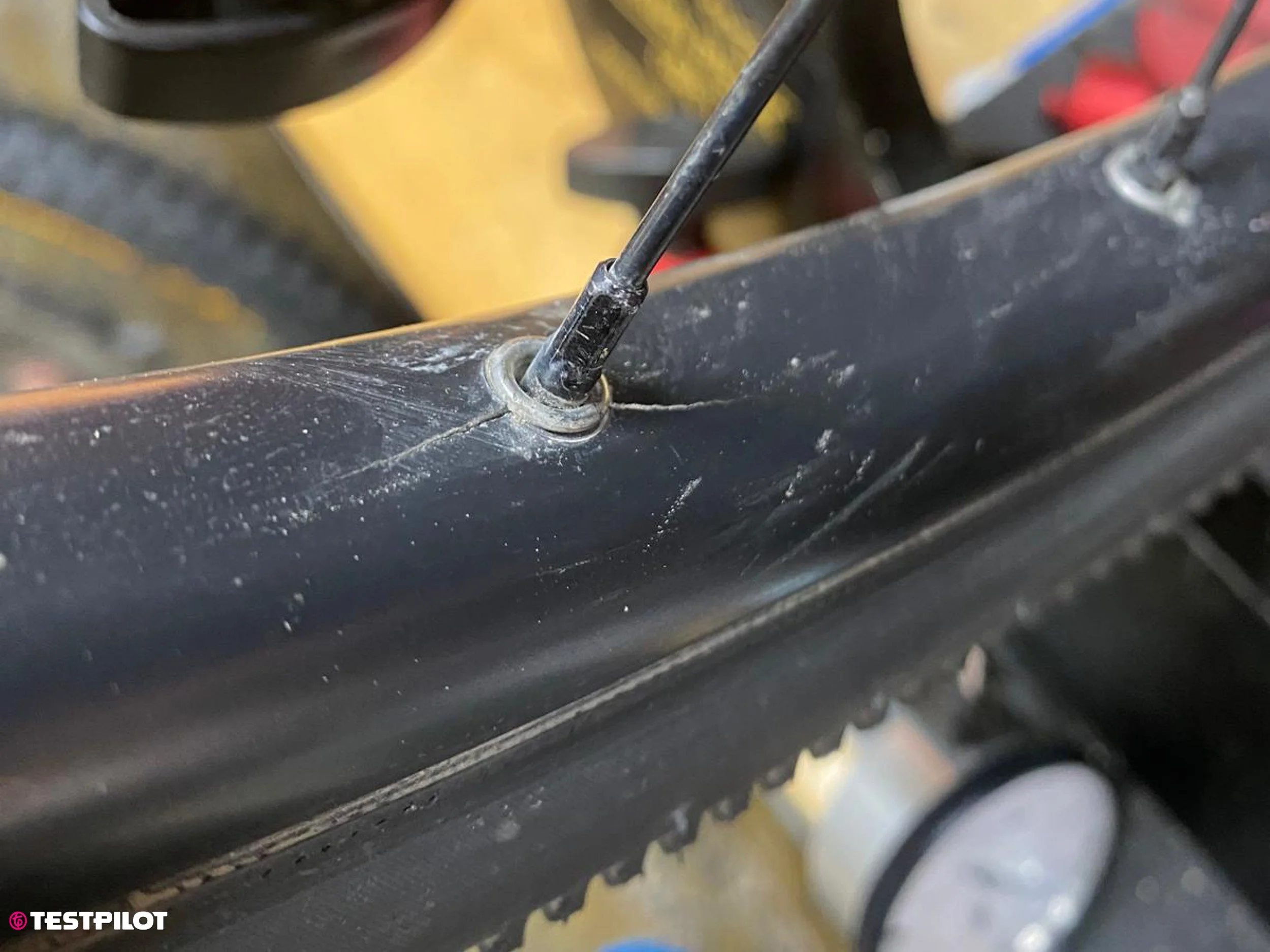 Warum das wichtig ist: Ein beschädigter Rahmen kann im Gelände brechen und das kann unschön ausgehen. Frühzeitig entdeckt, lassen sich sogar an Carbonrahmen manche Schäden reparieren. Teilweise kann so ein Schaden auch von der Herstellergarantie abgedeckt sein.