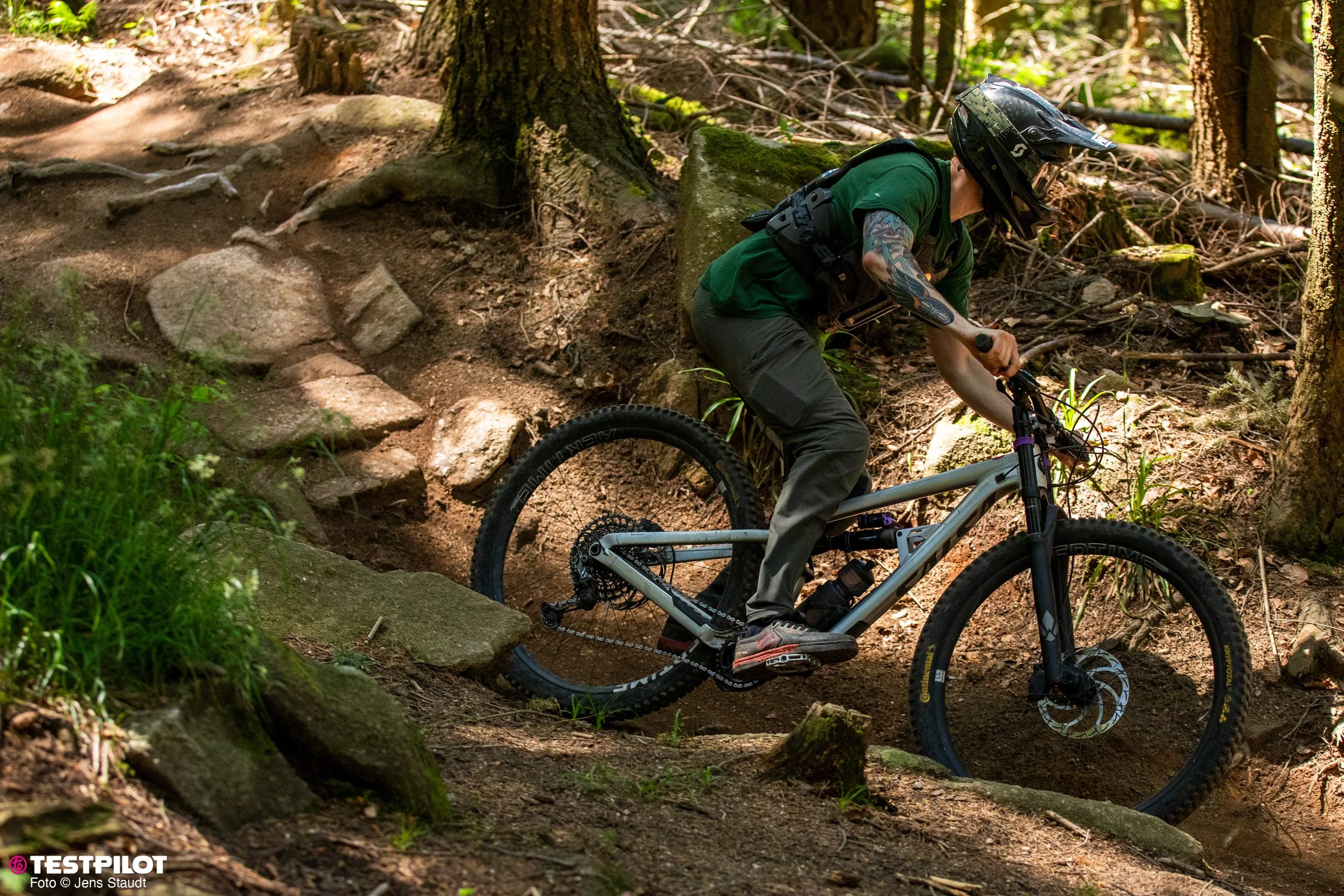 Fahrstil: Als ehemaliger Racer darf es gerne schnell und flüssig sein. Größere Sprünge und steile Rampen dürfen aber auch nicht fehlen. Das Bike ist etwas straffer und schneller abgestimmt, dass es entsprechend schnell auf Input vom Fahrer reagiert.