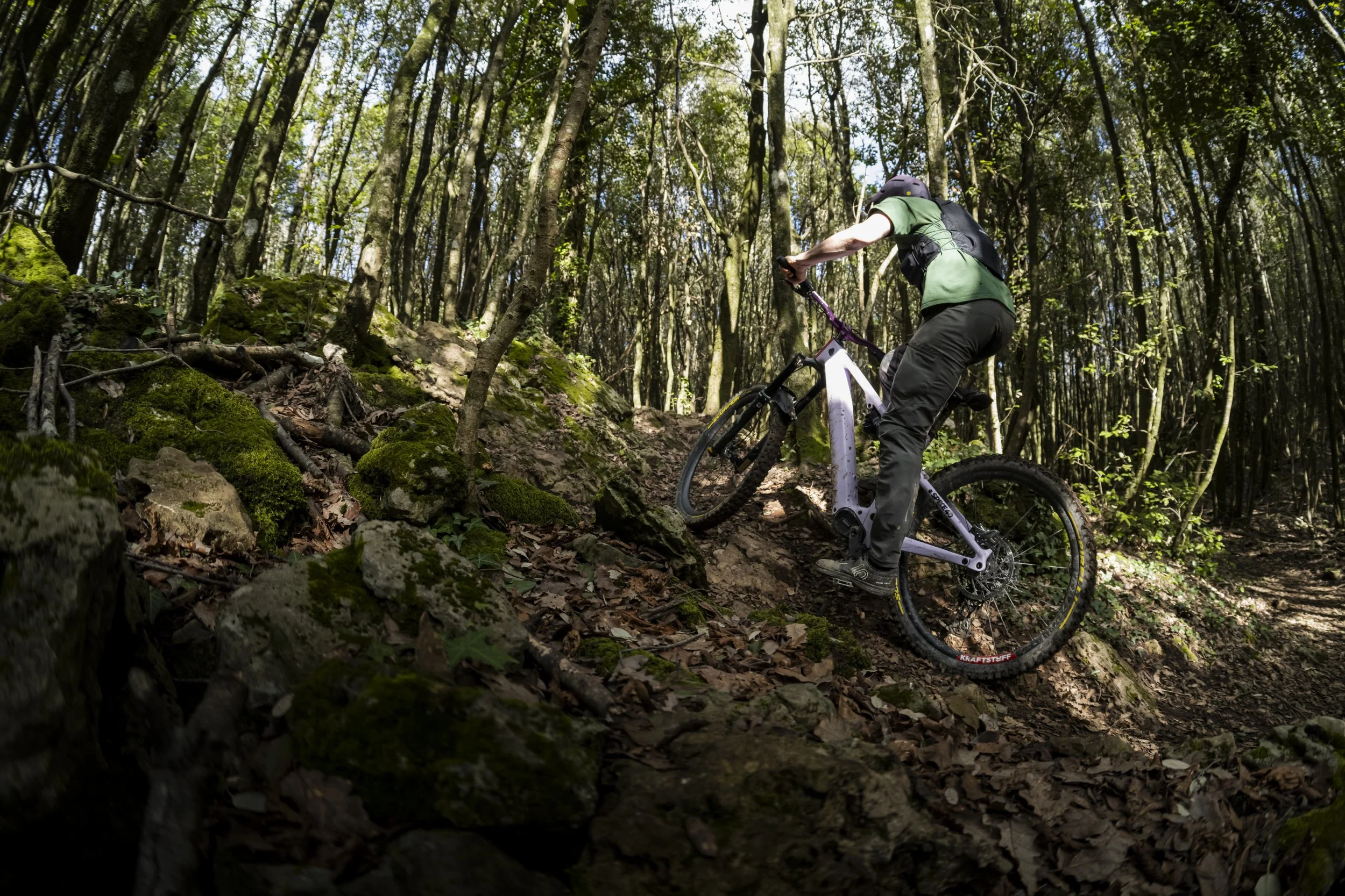 Auf den engen, hakeligen Uphill-Trails pushte mich der Motor manchmal zu sehr nach vorne. Das bekam ich über „Acceleration“ in den Griff. Ein paar Prozent runter, und schon schob es mich entspannt um die Kurve, anstatt hinaus.