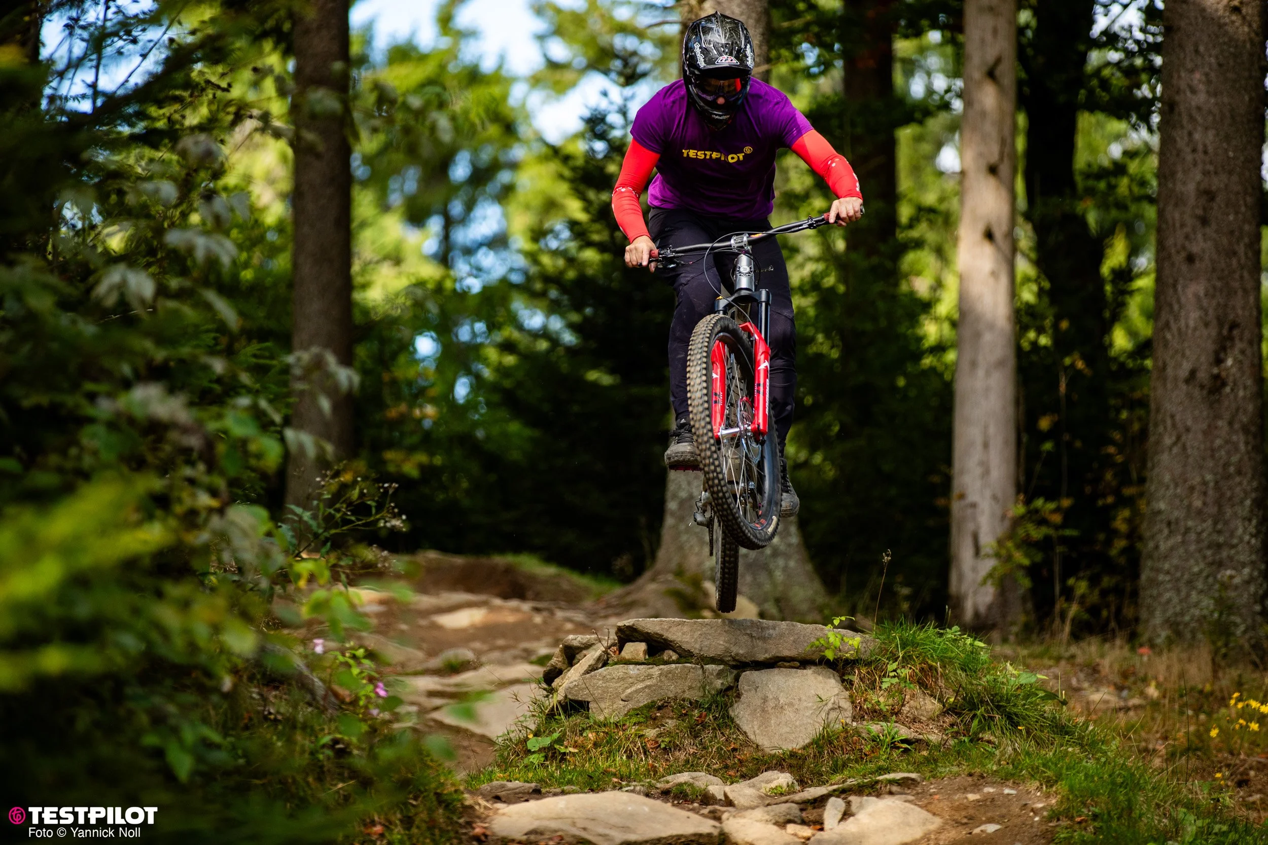 Riding style: With his racing background, the lines are planned, even if there is anything bigger in his way. If possible, sections will be jumped over. You should use the entire width of a trail. Others would say - uncompromising.