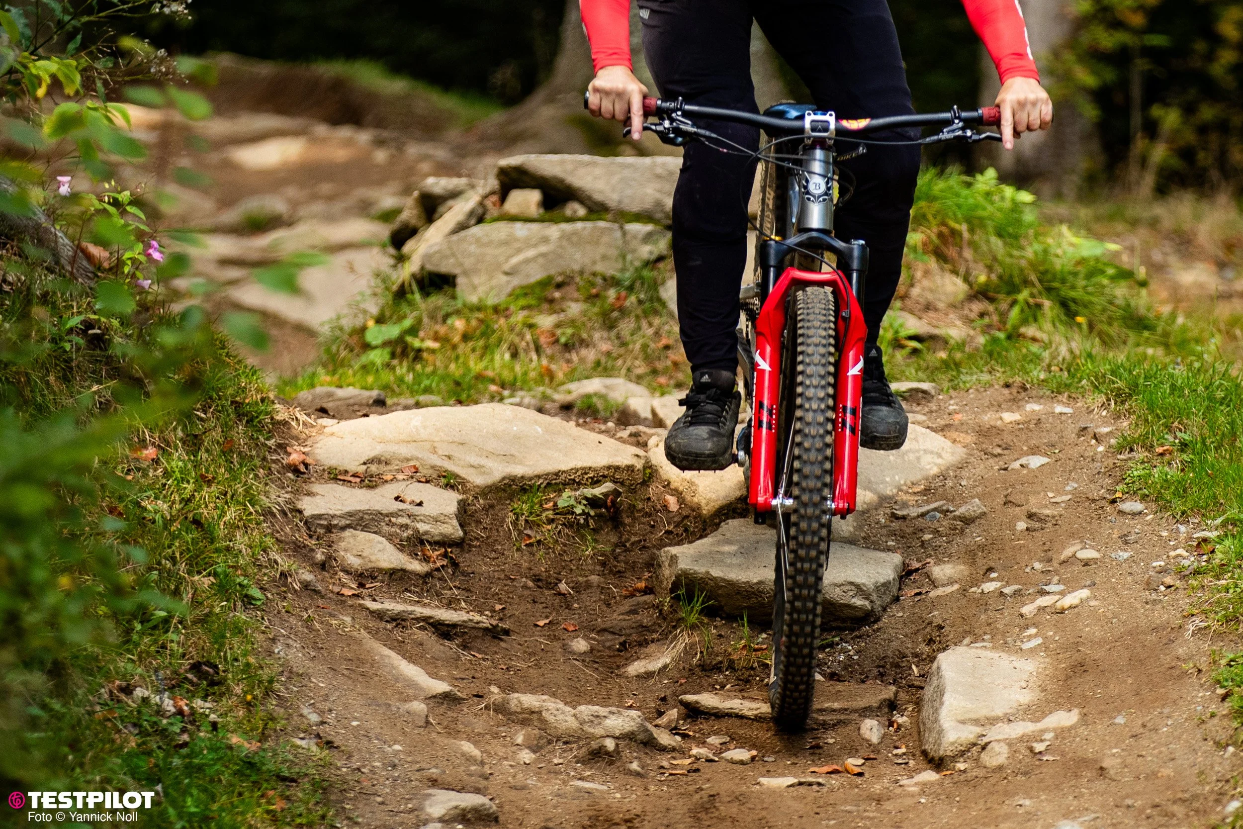 However, if you get crazy with drop height or consciously—or unconsciously—land with too much force, you can definitely get a solid knock through the handlebars. Riders who are hard on gear and regularly hit the end stop might wish for a slightly thicker bottom-out bumper—but fortunately, there's always your trusted tuner for that.