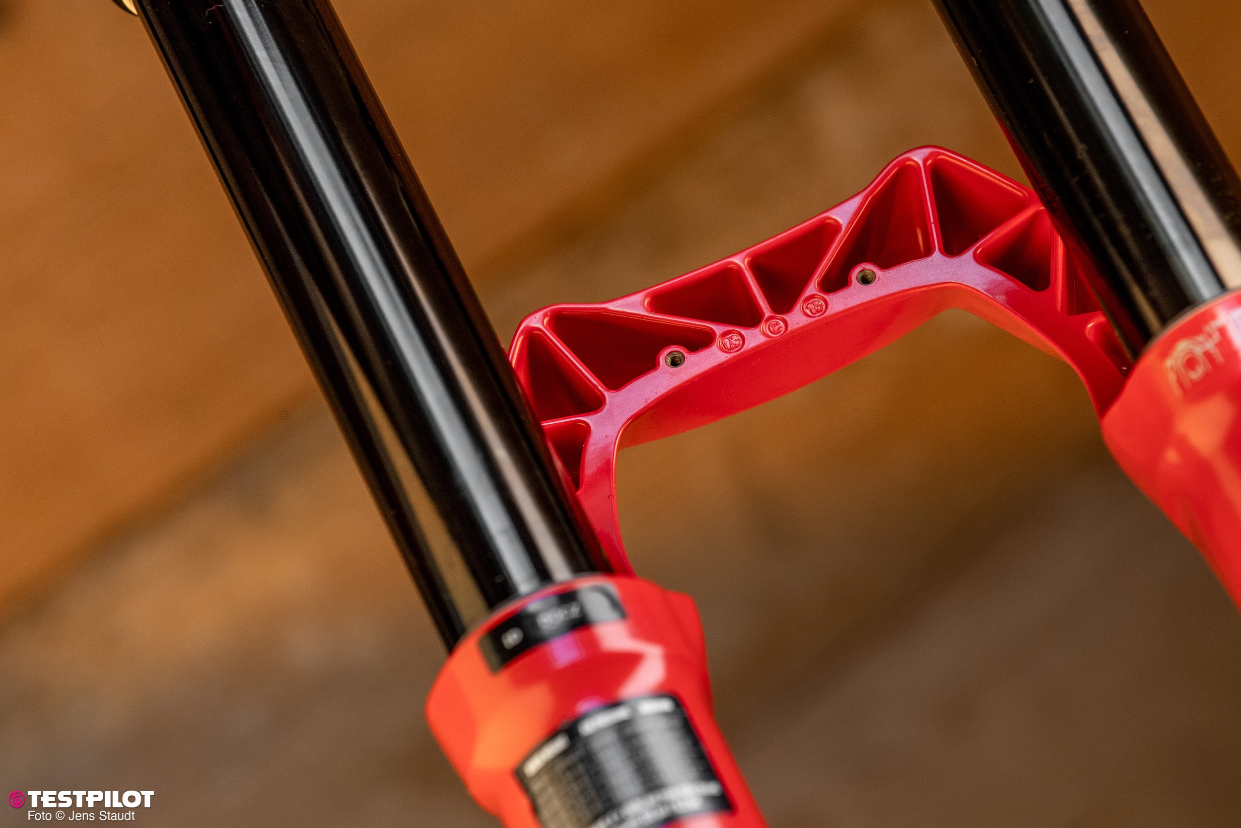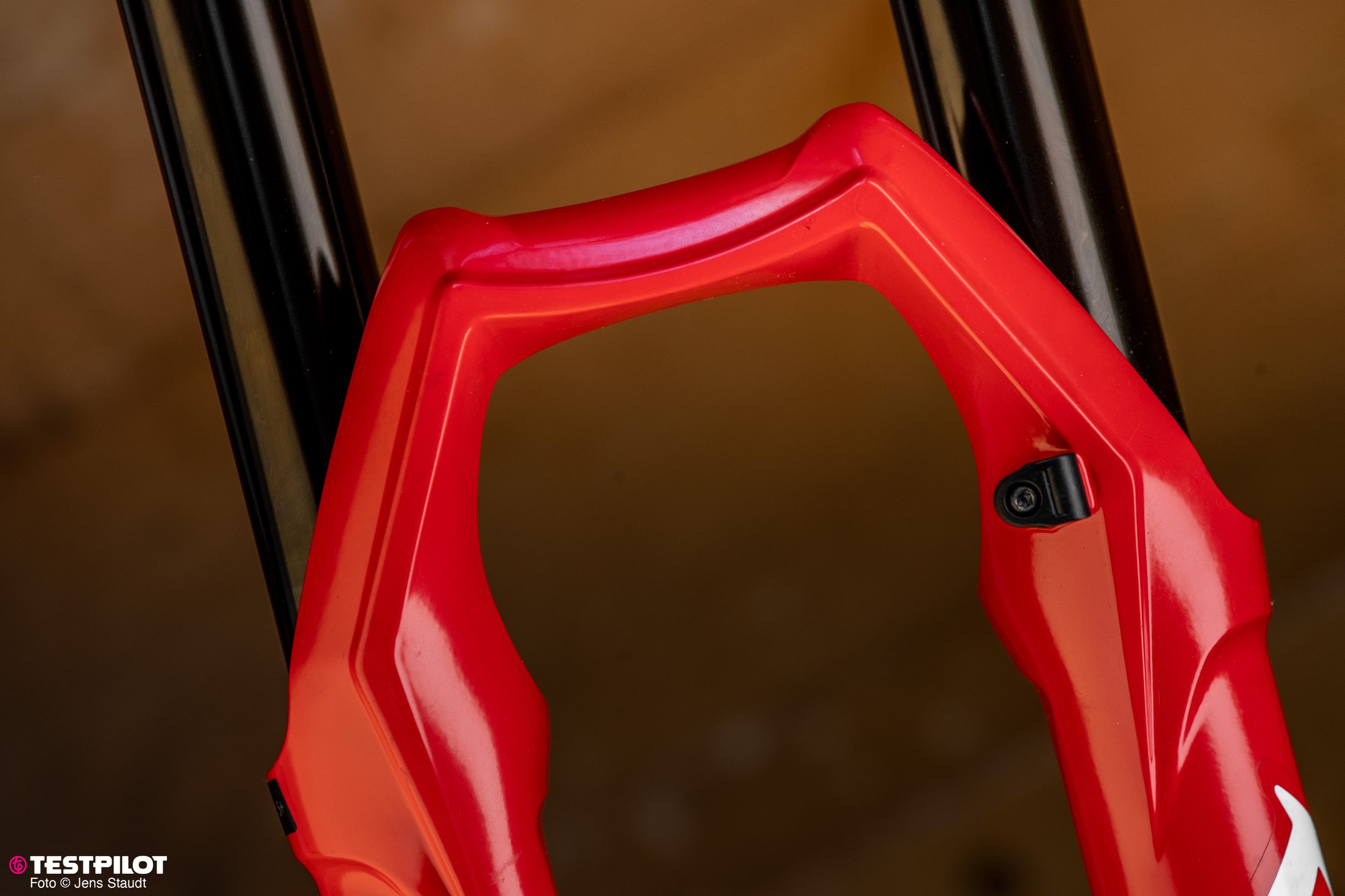 Rebound (red dial, right fork leg, bottom): As described, Marzocchi sticks with the GRIP cartridge's adjustability for low-speed rebound. Depending on the spring rate, there are recommendations for the initial setup. Later on, you can, of course, adjust it slower or faster according to personal preference.