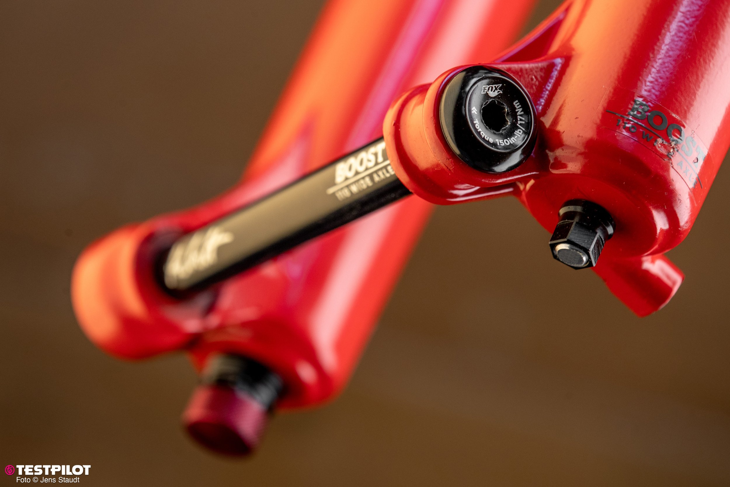The proven 15 x 110 Boost thru-axle system is used. For those who prefer not to use tools, there is a version with a quick-release. For a cleaner look (and slightly less weight), the Kabolt version is available, which requires a 6 mm hex key.