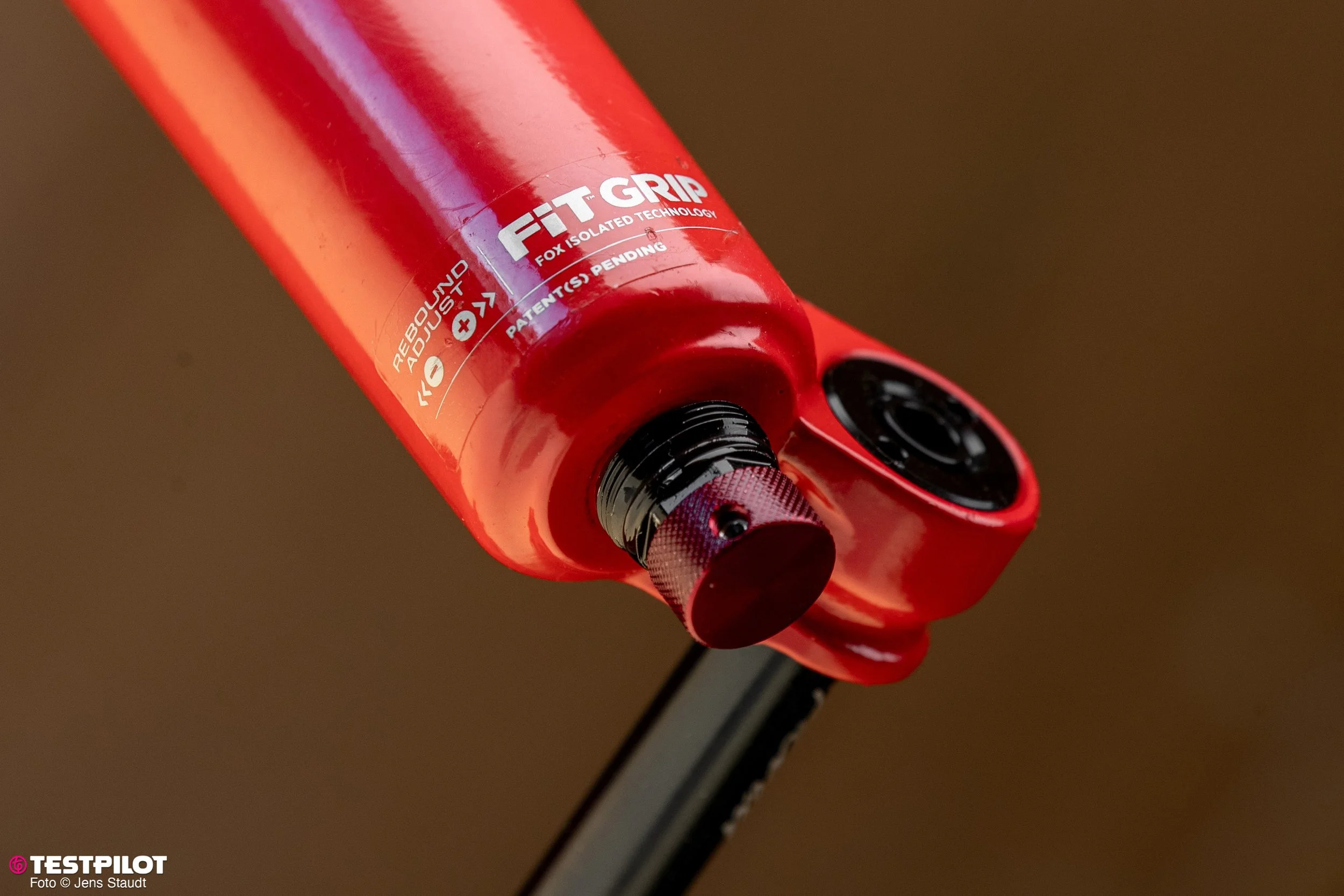 Typical Fox GRIP cartridge: a red low-speed rebound knob.