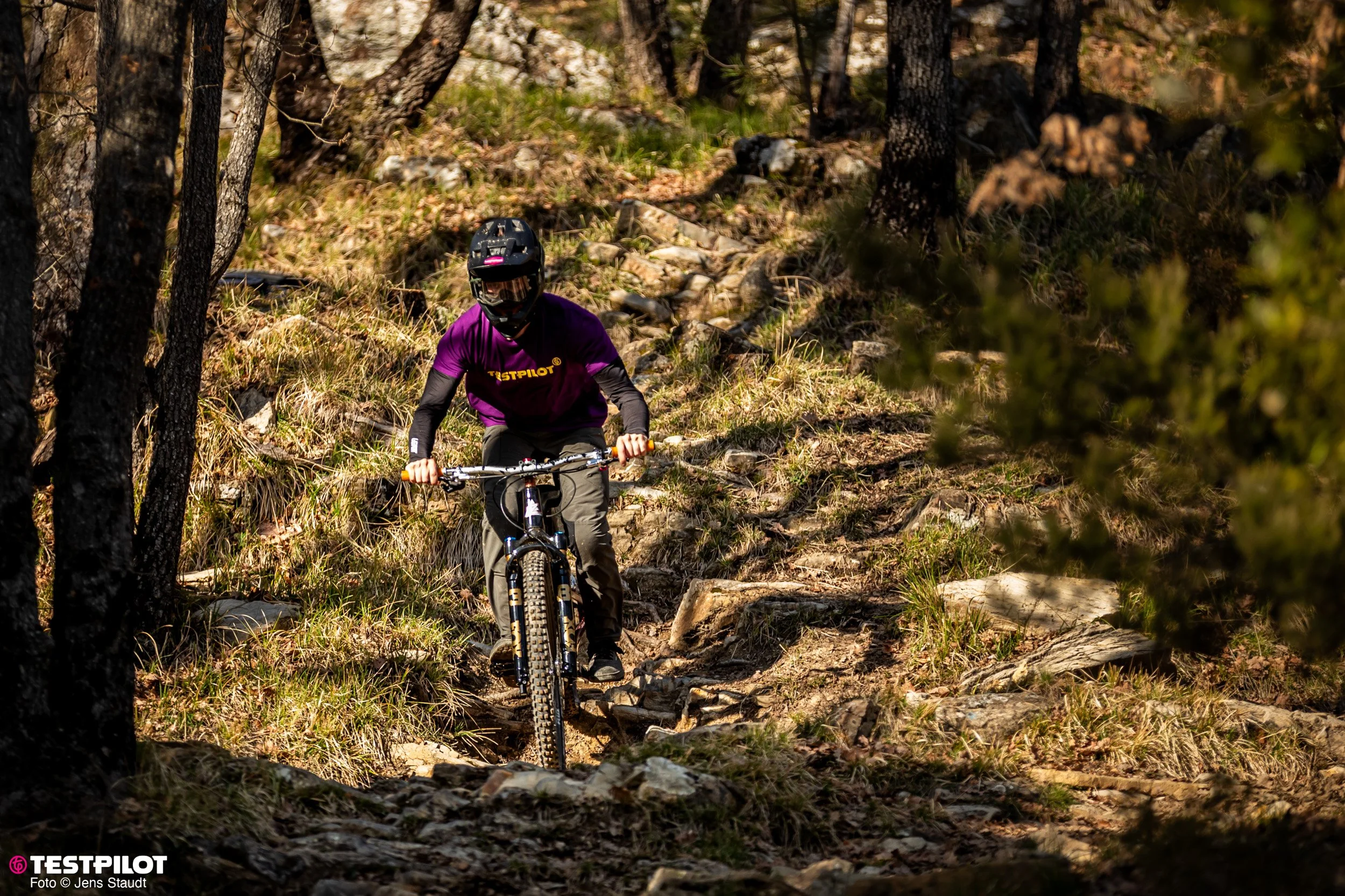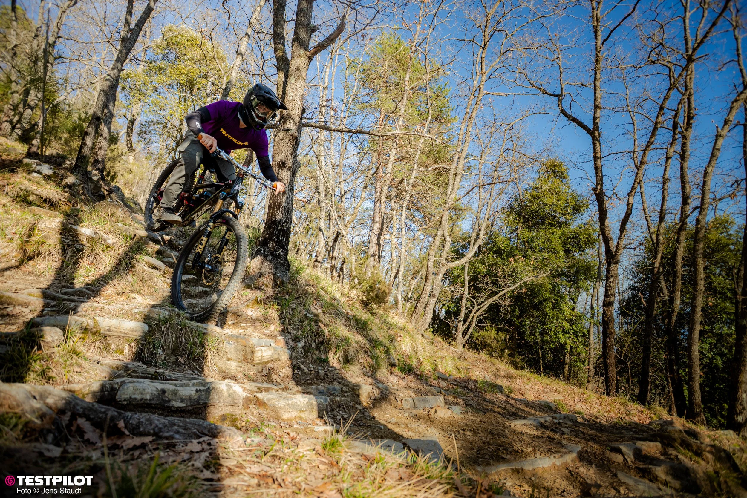 Fahrstil: Mit seinem Race-Hintergrund sind die Linien geplant, auch wenn es mal rumpelt. Wenn möglich, werden Passagen übersprungen. Die ganze Breite eines Trails sollte man nutzen. Andere würden sagen – kompromisslos.