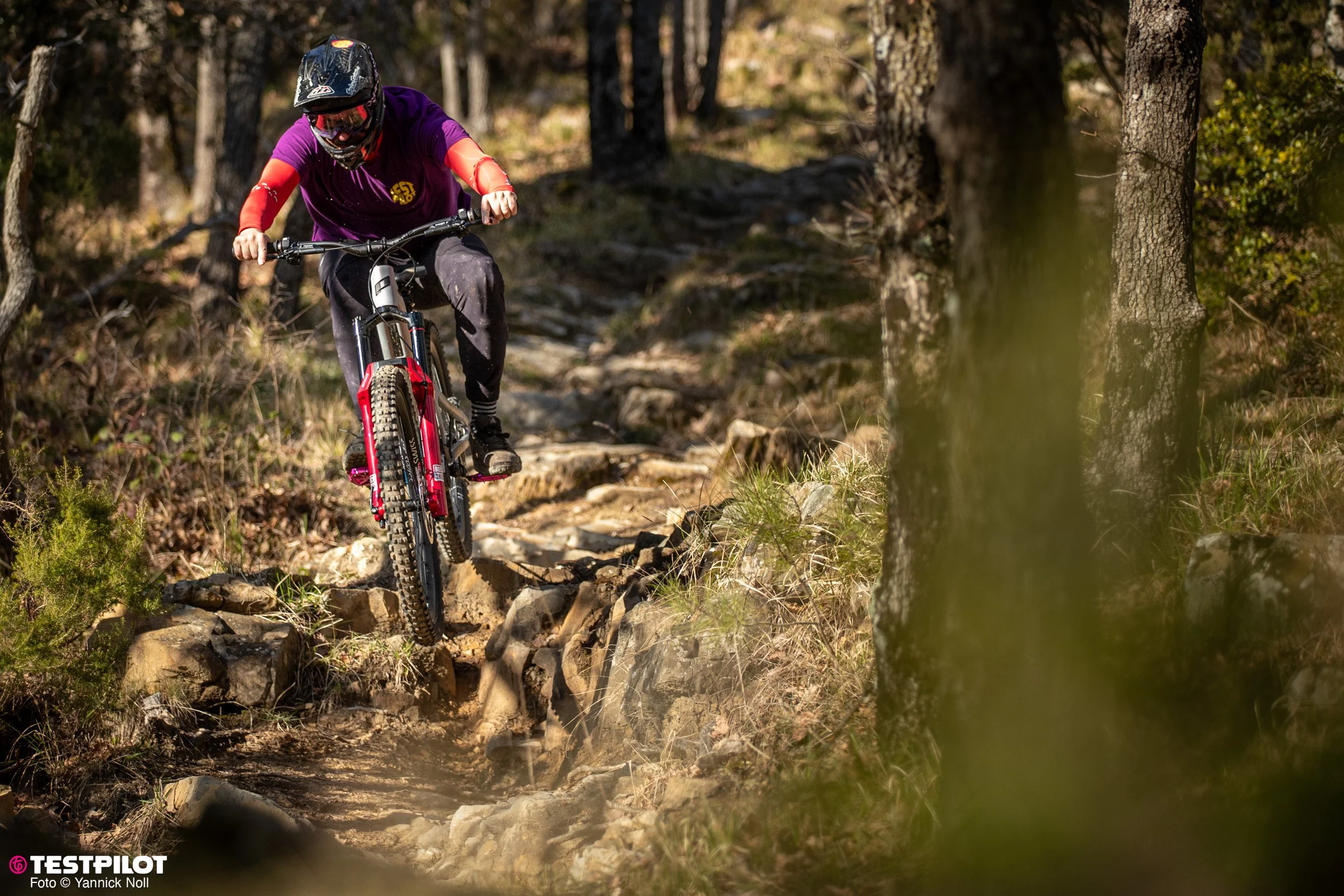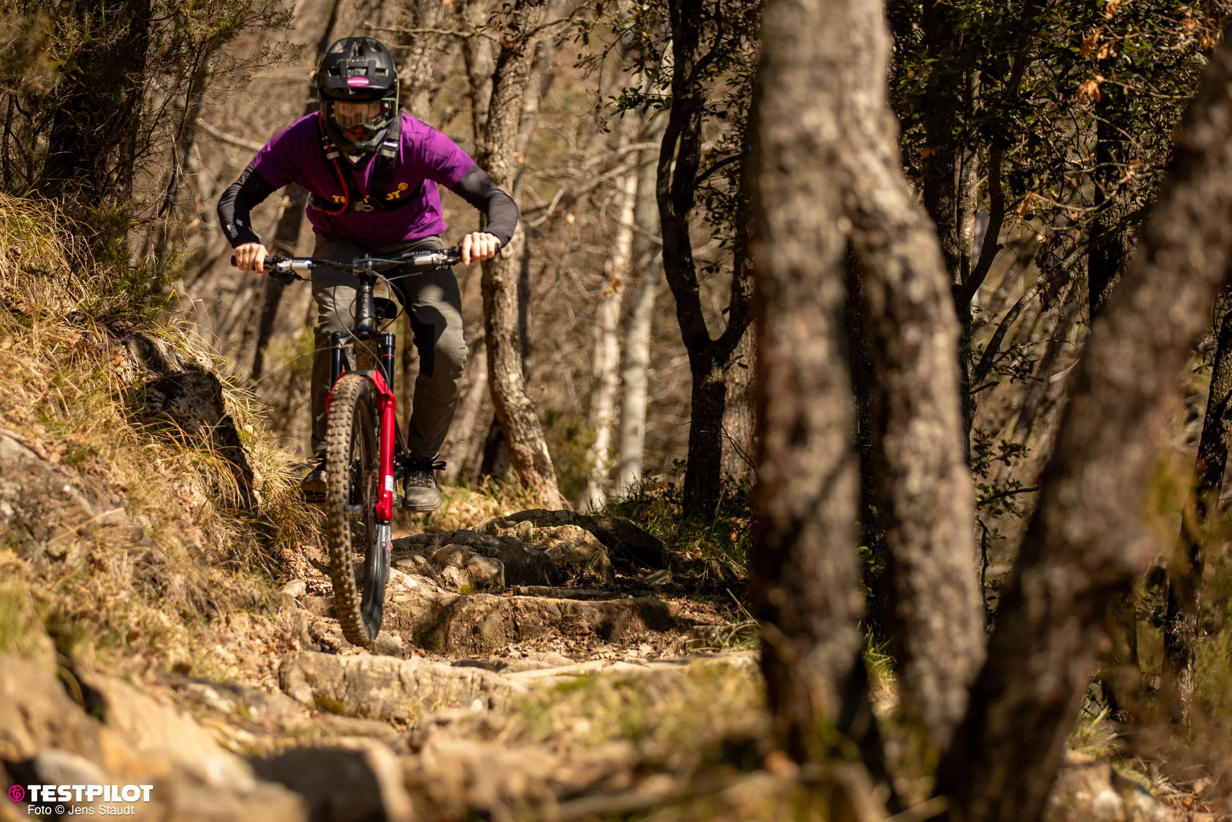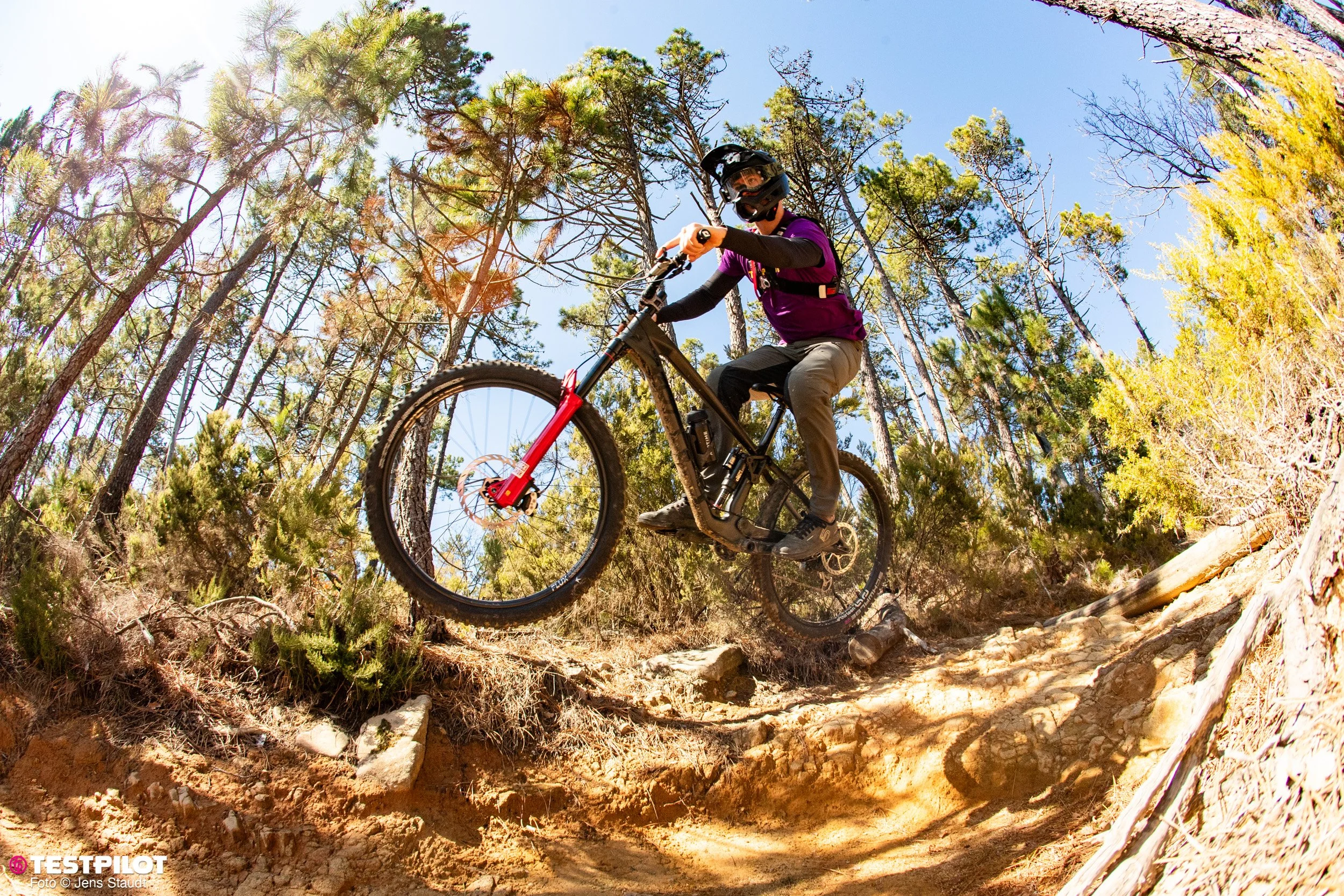 Fahrstil: Mit seinem Race-Hintergrund sind die Linien geplant, auch wenn es mal rumpelt. Wenn möglich, werden Passagen übersprungen. Die ganze Breite eines Trails sollte man nutzen. Andere würden sagen – kompromisslos.