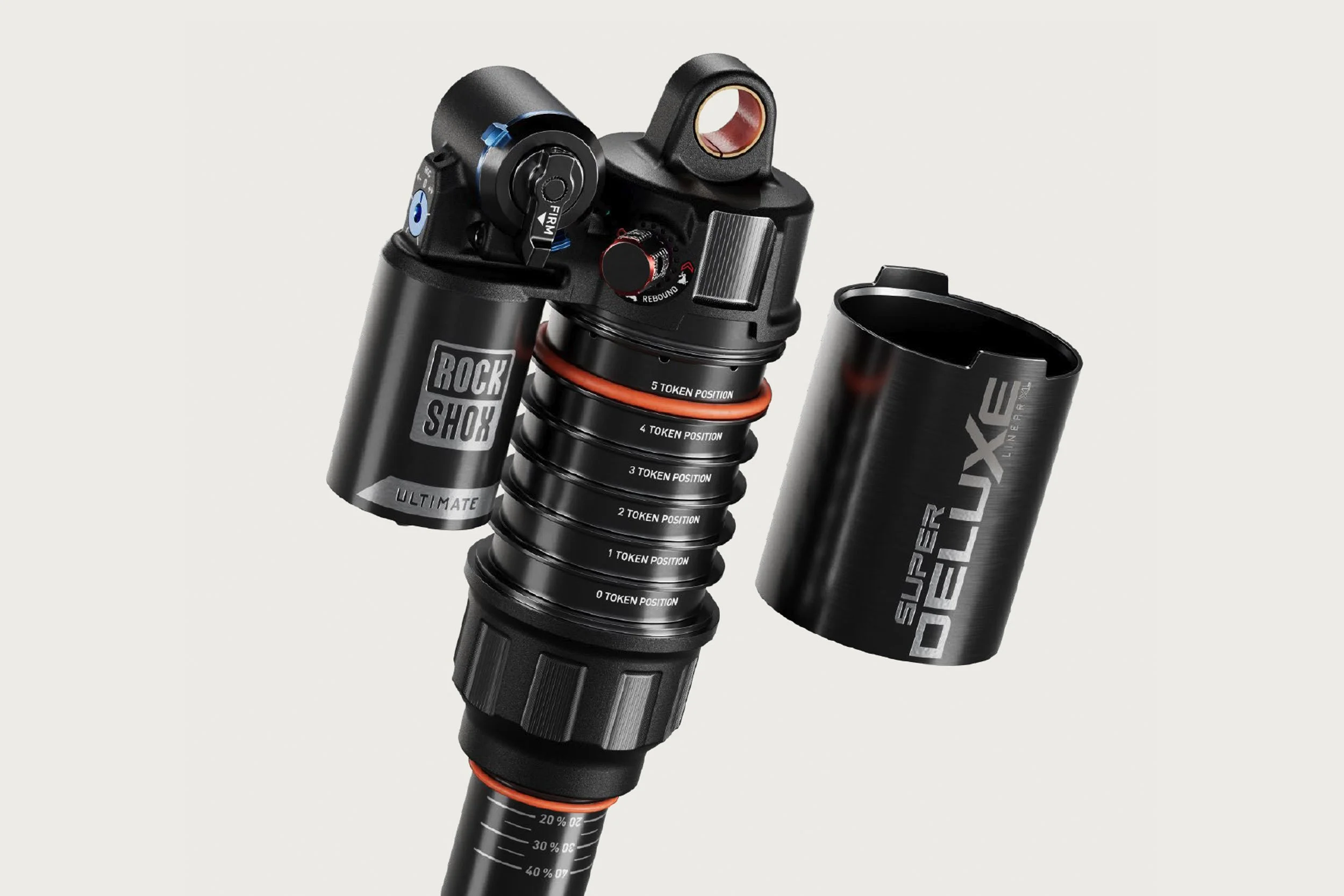Während sich bei ZEB, Lyrik und Vivid das Token-System nicht geändert hat, wartet der Super Deluxe mit einem spannenden, neuen Feature auf. Hier muss man ab sofort keine Kunststoff-Tokens mehr ein- und ausbauen, sondern kann ganz einfach einen Gummiring zwischen 6 verschiedenen Positionen verschieben. Trailseitige Änderungen werden damit einfacher und man muss nicht mehr in den Untiefen der Werkzeugkiste verzweifelt den passenden Token suchen…