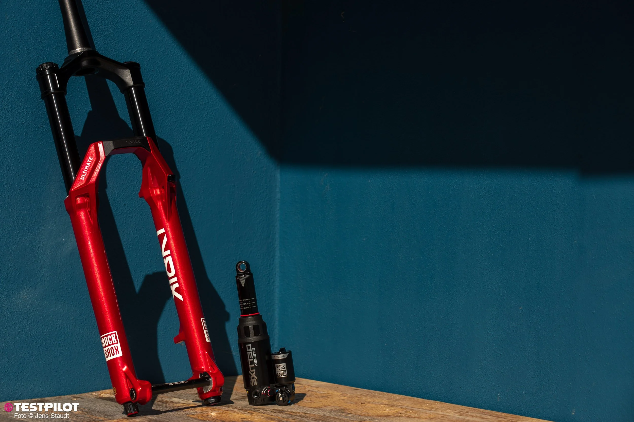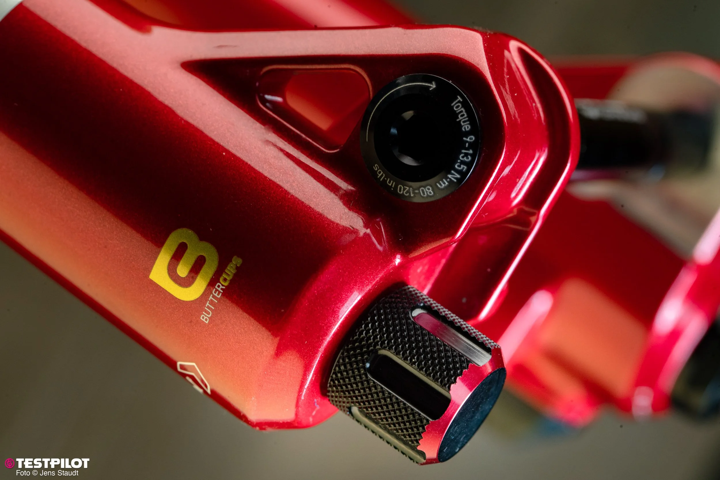 Außerdem sitzen die Entlüftungsventile (kleine rote Knöpfe) aufgrund des Twin-Tube-Designs ab sofort weiter oben. Schöner Nebeneffekt für die ungedehnte Fraktion: Zum Entlüften muss man sich nicht mehr so weit nach unten bücken.
