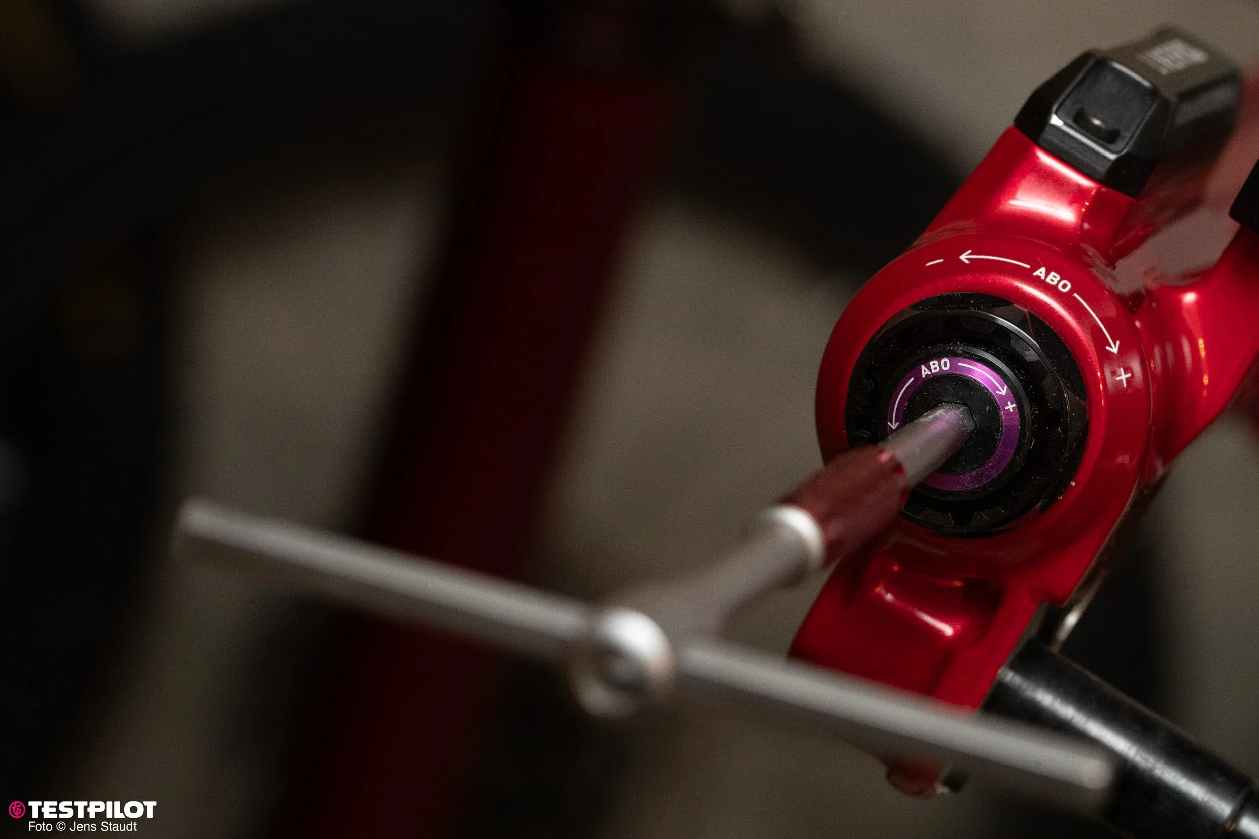 Den ABO an den Gabeln verstellt man mit einem 5-mm-Inbus. In 10 Positionen kann man so die Endprogression tunen.