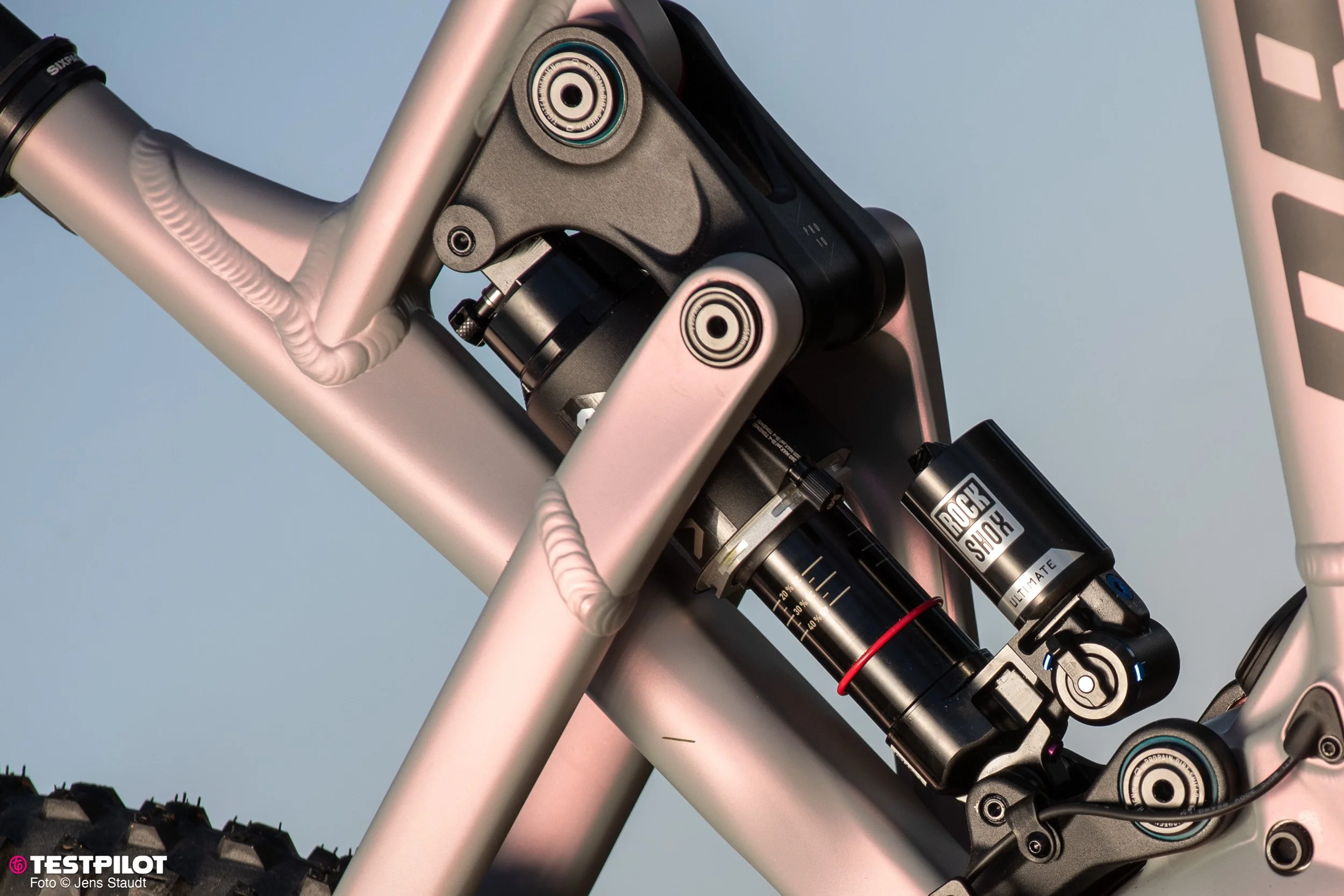 Hier entkoppelt es Luftfeder und Dämpfung von Trail-Unebenheiten.