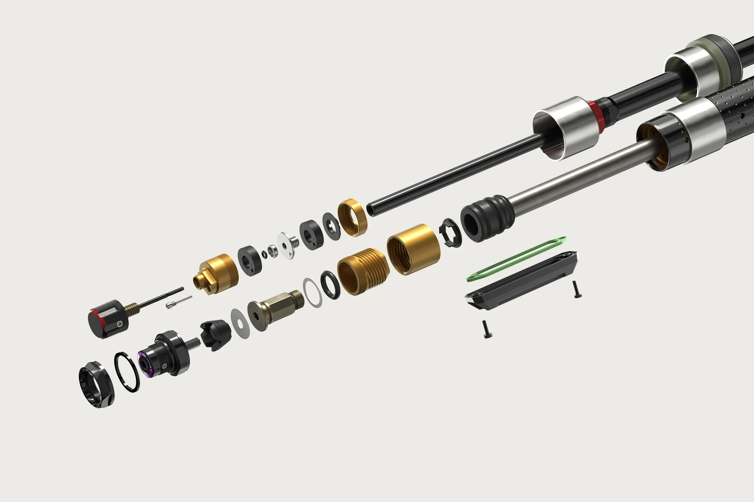 Dazu mussten mehrere Parameter optimal aufeinander abgestimmt werden: die Volumina von Negativ- und Positivluftkammer, die Größe des Luftfederschafts und die Kolbenoberfläche. Der entscheidende Schritt war der Wechsel der Luftfeder auf ein Twin-Tube-Design, das es erlaubte, den Kolbendurchmesser zu verringern und das Verhältnis zwischen Kolben- und Luftschaft-Durchmesser zu reduzieren