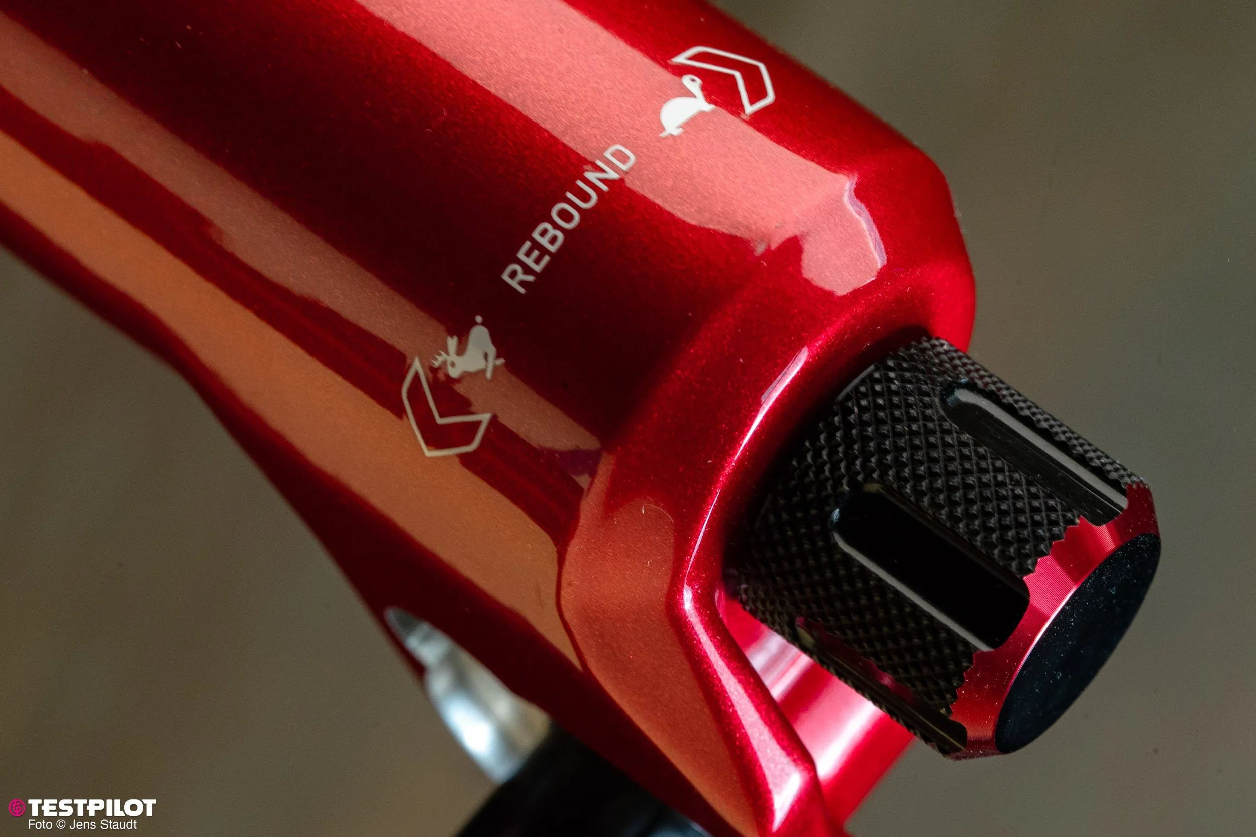 Cleveres Detail: Der Rebound-Einstellknopf der Dämpfer lässt sich einfach abziehen und hat einen 3-mm-Sechskant als Kopf – damit lassen sich HSC und ABO einstellen.
