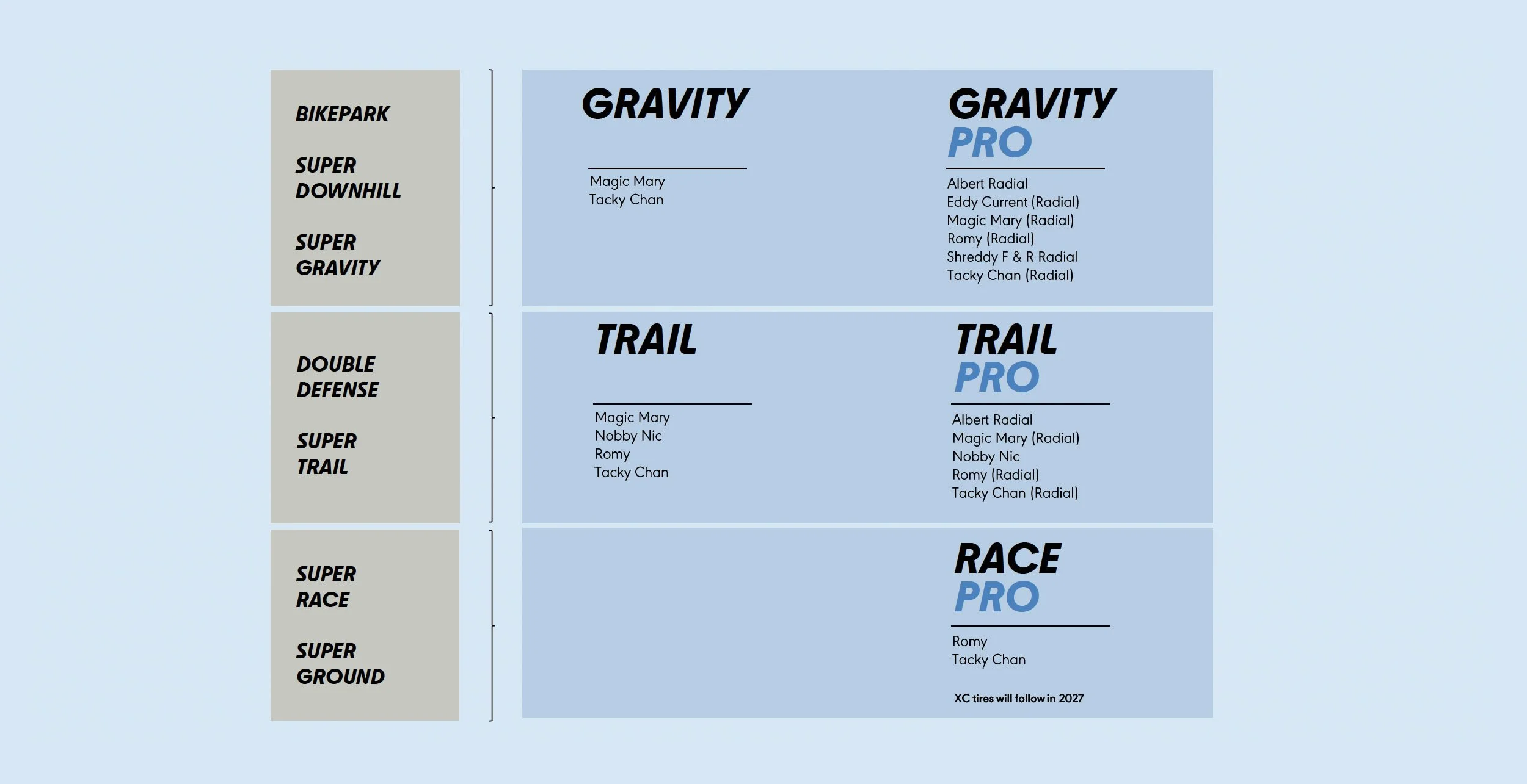 Ziel ist ein klares, dreistufiges System, das ab sofort im MTB-Bereich seine volle Wirkung entfaltet. Keine kryptischen Zusätze, sondern klare Einsatzgebiete. Ein wahrer Segen, nicht nur für den Ottonormalbiker.