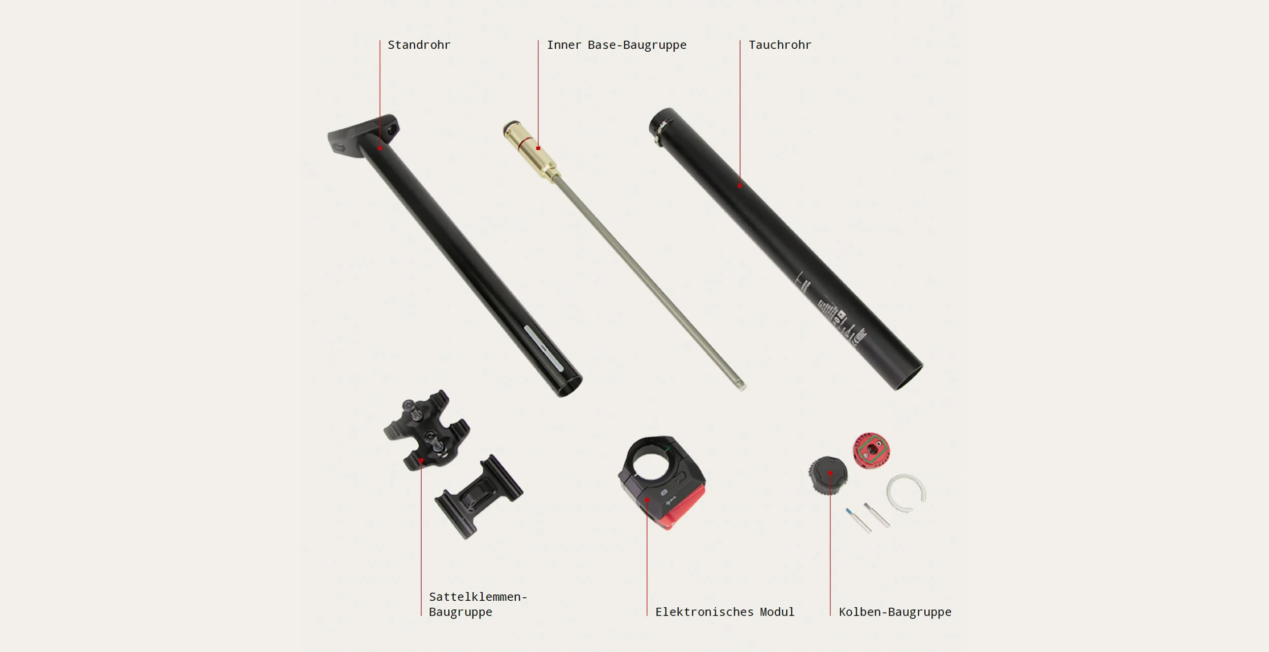 Die neue Reverb AXS kommt mit einem Luftfeder-Design, das sehr robust ist und sich ganz einfach warten lässt. Die Akku-Position ermöglicht ein schnelles Zerlegen ganz ohne spezielle Werkzeuge. Das effiziente Design wird von einem kompletten Sortiment an Ersatzteilen unterstützt, die von dem Tauchrohr, über die Kolben-Baugruppe, dem Standrohr, der Sattelklemmung bis hin zum elektronischen Modul und der Inner Base-Baugruppe reichen.